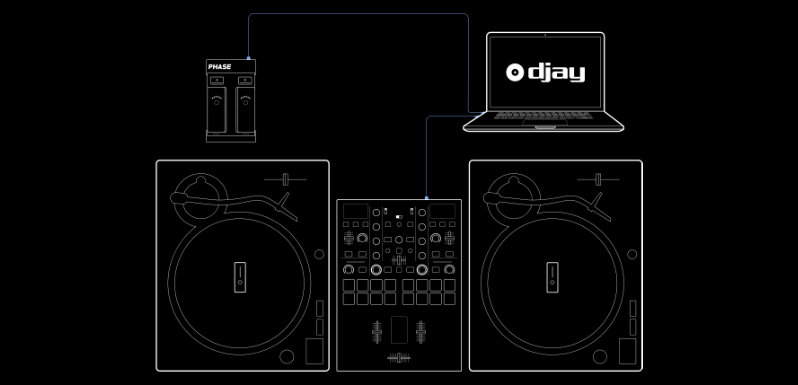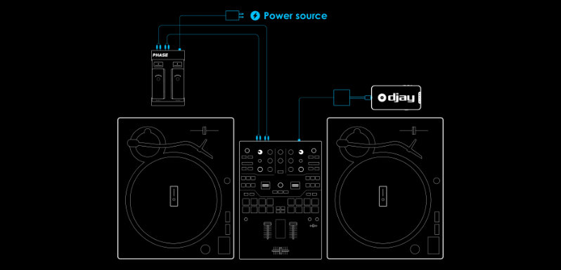 - Conecta tu Phase Receiver y cualquier mezclador o controlador DJ que vayas a utilizar.