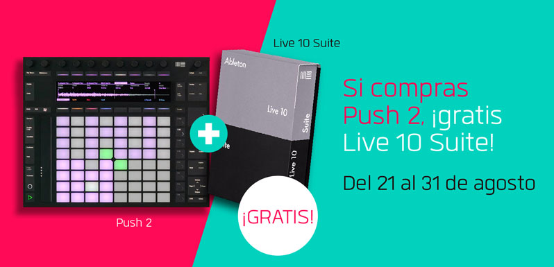 Entre el 21 y el 31 de agosto, si compras Push 2 conseguirás una licencia de Live 10 Suite totalmente gratis. Tan fácil como suena: G-R-A-T-I-S. Aprovecha esta oferta para hacerte con la versión más potente y cargada de características de Live a la vez que te haces con la mejor herramienta para tomar el control de Live, ya sea creando, editando o produciendo.