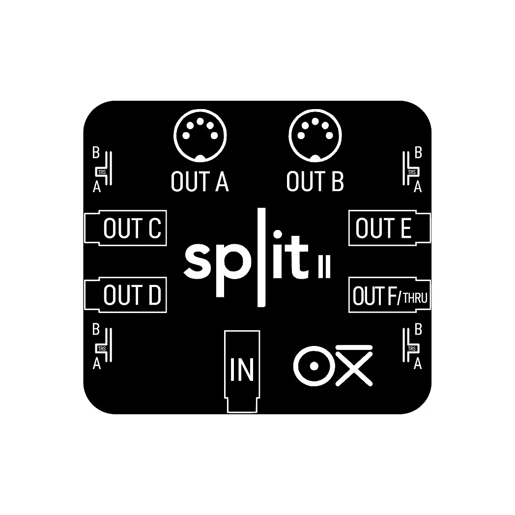 OXI Split 2 es una solución compacta y asequible para setups que dependen de conexiones MIDI. Diseñada específicamente para OXI ONE, permite ampliar el número de salidas MIDI disponibles y conectar fácilmente varios sintetizadores, cajas de ritmos u otros dispositivos MIDI desde un único punto.