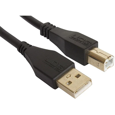 El cable UDG Ultimate Audio Cable USB 2.0 A B Black Straight 2m es ideal para conectar interfaces de audio, micrófonos USB, dispositivos USB-MIDI, ordenadores, etc