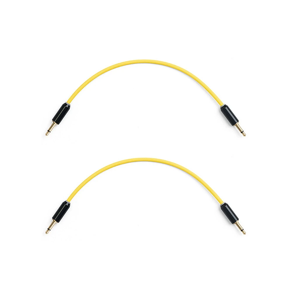 O Candycord Halo ACV26YE da MyVolts consiste em 2 cabos de patch com conectores miniJack mono em amarelo de 15 cm.