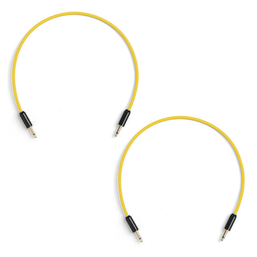 O MyVolts Candycord Halo ACV27YE consiste em 2 cabos de patch com conectores miniJack mono em amarelo de 30 cm.