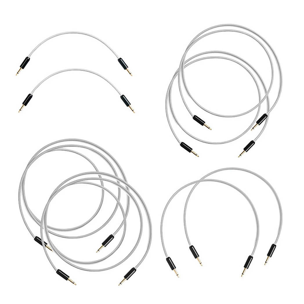 Candycord Halo ACHCPCG da MyVolts é um pacote com 8 cabos de patch minijack mono em cinza e várias comprimentos