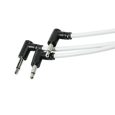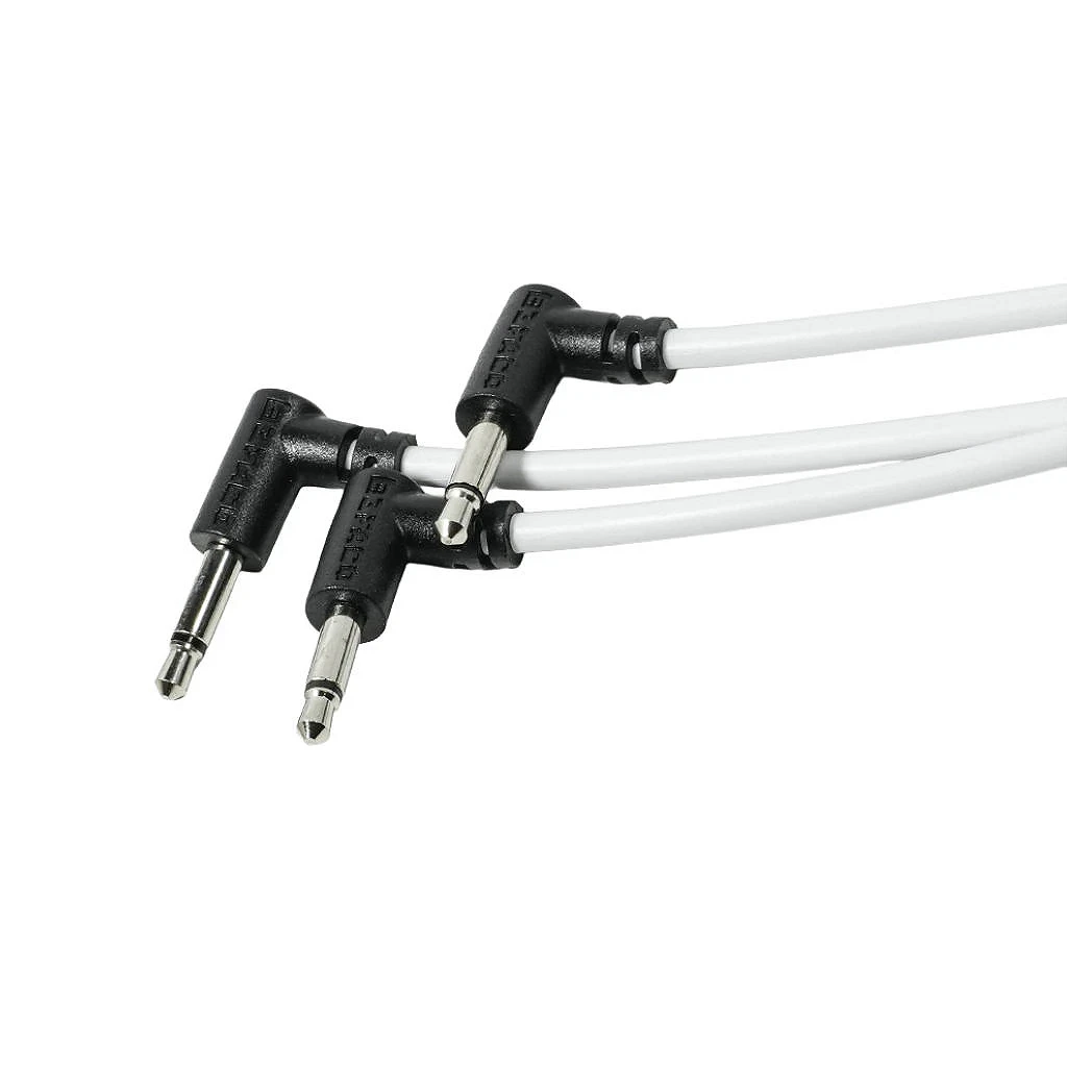 Befaco Cable Pack Blanco 1m Acodado é um pack com 4 cabos de Patch de 100 cm com conectores minijack curvados para o seu sistema modular Eurorack