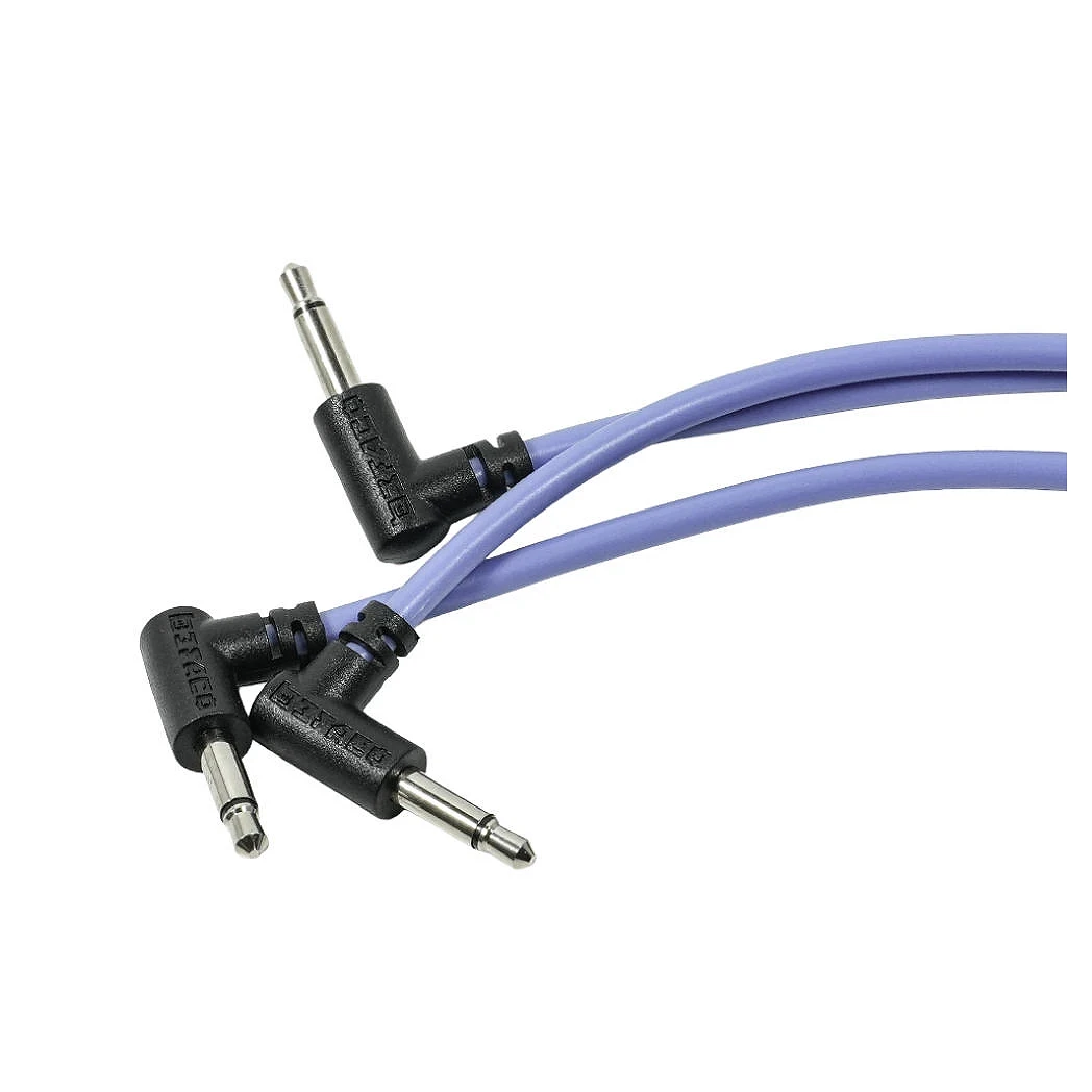 Befaco Cable Pack Azul 1,2m Acodado é um pack com 3 cabos de Patch de 120 cm com conectores minijack curvados para o seu sistema modular Eurorack