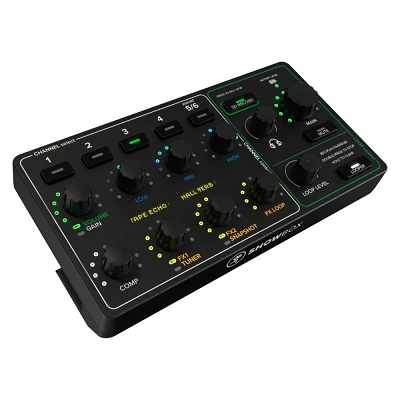 ShowBox es un equipo para presentaciones en vivo que funciona con baterías y que facilita obtener un excelente sonido en vivo en cualquier lugar. Es un todo en uno, es portátil, es un amplificador de guitarra acústica, es un mezclador de 6 canales, es un procesador de efectos y es una interfaz usb-c.
