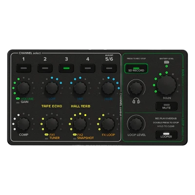 ShowBox tiene un montón de prestaciones como un afinador de guitarra y un looper integrados además de la capacidad de grabar en un tarjeta SD o grabar y reproducir a través del puerto USB-C o bien usar la conexión Bluetooth para reproducir pistas de acompañamiento o música desde un dispositivo móvil.