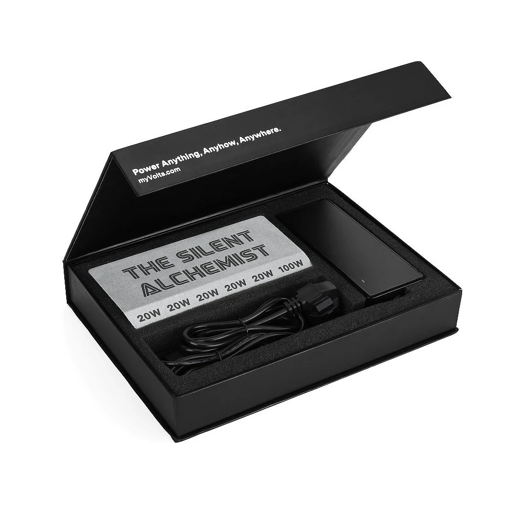 MyVolts Silent Alchemist with 24V PSU é um hub de alimentação USB com 7 portas USB isoladas multivoltagem e 1 porta USB de alta potência