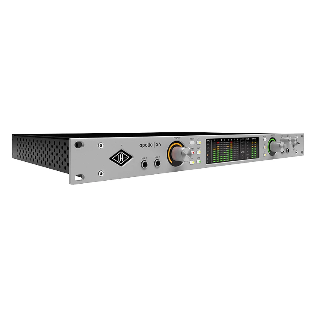 Universal Audio Apollo X6 Gen 2 Essentials+ Edition es una interfaz de audio Thunderbolt con 16 entradas y 22 salidas, 2 previos de micro Unison, conversión de audio excepcional, Auto-Gain, Apollo Monitor Correction, sonido envolvente con gestión de graves, DSP HEXA para plugins y pack de plugins premium para Mac o Windows