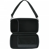 CB-404 es estilizada y resistente, presenta una carcasa semirrígida de EVA con un exterior de poliéster resistente y una división interna móvil que crea compartimentos separados para el sampler y elementos como un adaptador de CA.