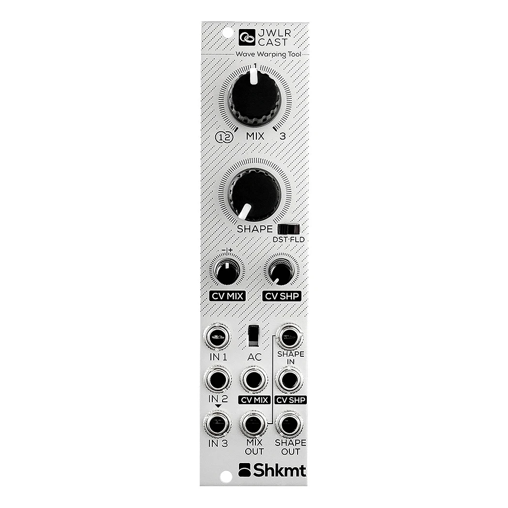 Shakmat Modular Jeweler Cast es un módulo eurorack capaz de procesar tanto señales de audio como CV. Está compuesto por dos secciones independientes: Mix y Shaper. Combina modulador en anillo, crossfader, wavefolder y distorsión. Gracias a este conjunto de herramientas, este módulo compacto analógico puede manipular en infinitas maneras.