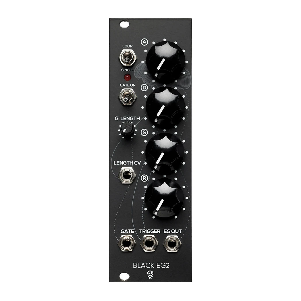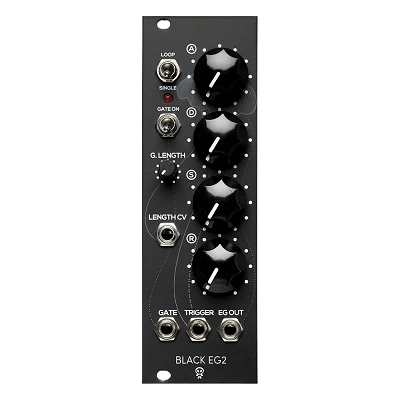Erica Synths Black EG2 es un generador de envolvente con capacidades de looping con algunas características poro habituales. Dispone de un ajuste para ajustar la longitud del gate, lo cual permite generar envolventes ADSR completas incluso si recibe disparos cortos en la entrada. En el modo LOOP, el módulo saca la envolvente ADSR completa en vez del clásico modo AD. La longitud del gate se puede ajustar tanto manualmente como mediante CV, los ue permite usar este módulo en configuraciones con secuenciadores que sólo saquen secuencias trigger.