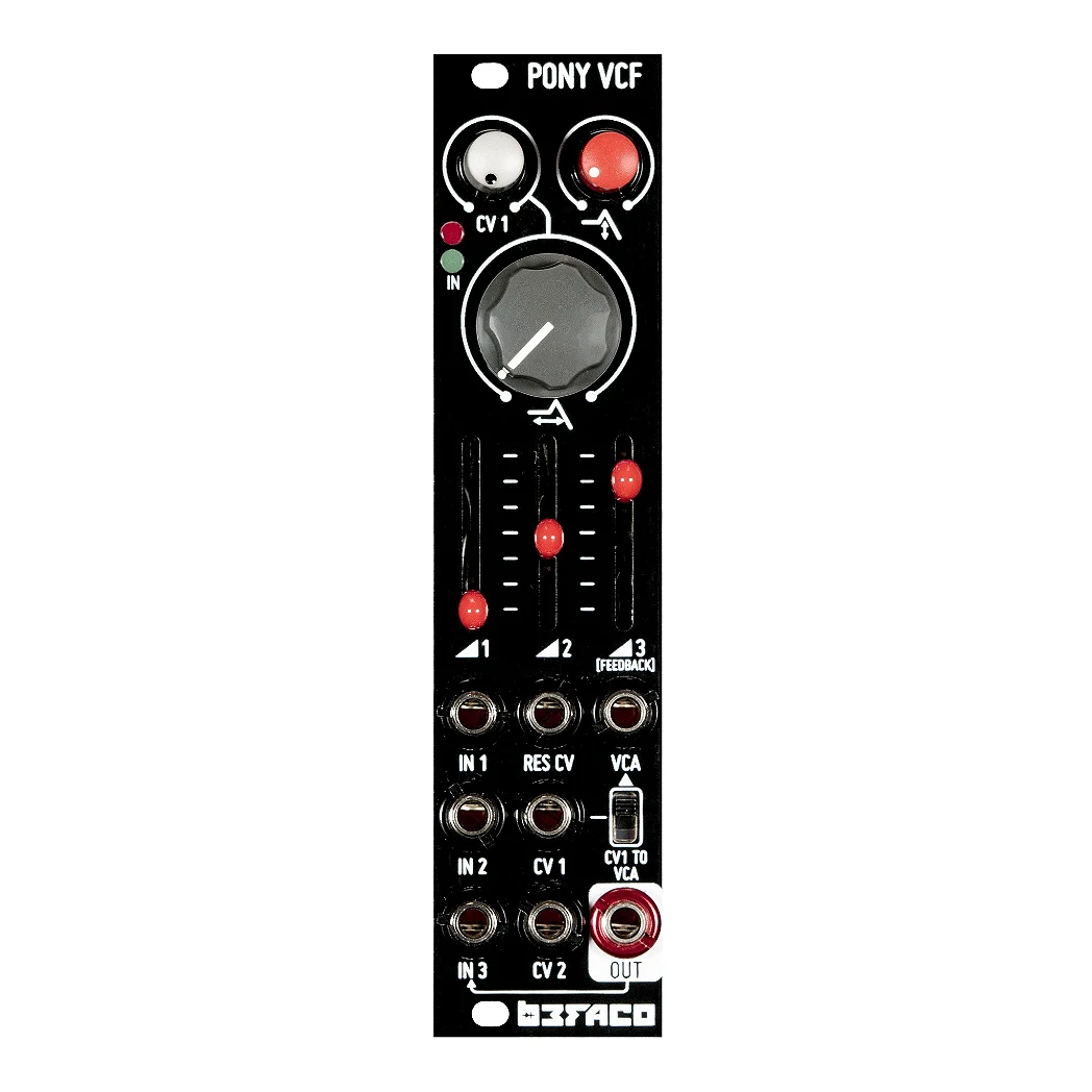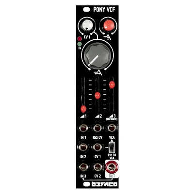 Befaco Octaves Pony VCF é um módulo Eurorack que combina filtro passa-baixos com VCA e mixer, permitindo combinar até 3 fontes sonoras diferentes. É construído em torno do chip SSI2144 FATKEYs, capaz de oferecer um som elegante de filtro de transistores sem distorções associadas, graças à topologia "improved ladder" de Dave Rossum.
