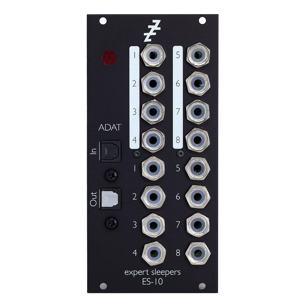 Expert Sleepers ES-10 é uma interface ADAT com 8 entradas e 8 saídas DC-coupled no formato de módulo eurorack. Qualquer entrada ou saída pode ser usada tanto para sinais de áudio quanto CV. As entradas podem ser ajustadas individualmente para aceitar áudio em nível de linha ou eurorack. Para as saídas, é possível adicionar mais através do módulo ES-5. O ES-10 utiliza conversores AKME "VELVET SOUND" e amplificadores operacionais de baixo ruído para a melhor qualidade de som possível. IMPORTANTE: O ES-10 não pode ser usado se não houver uma conexão ADAT nas entradas.