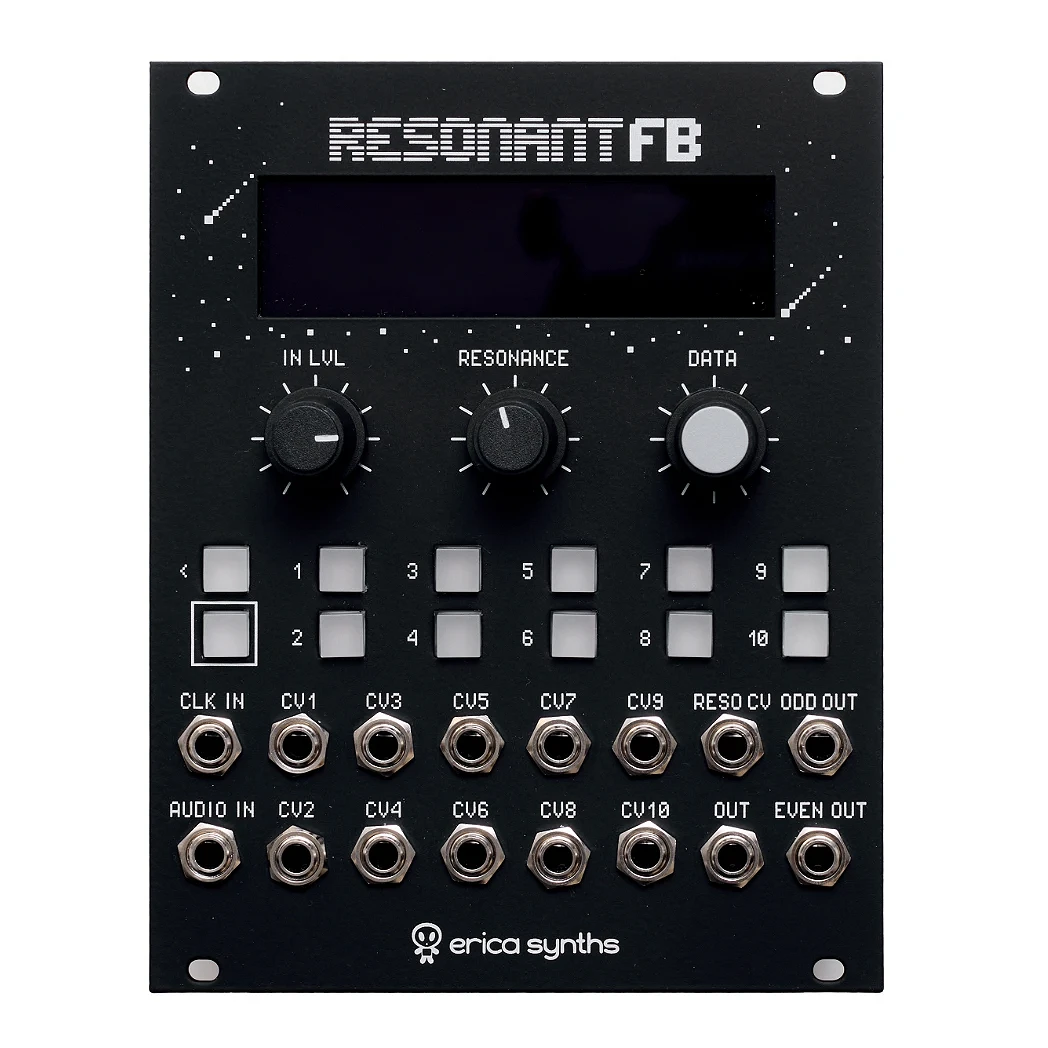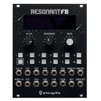 Erica Synths Graphic Resonant FB é um banco de filtros analógico de 10 bandas com controle digital disponível em formato de módulo eurorack. Cada banda pode ser controlada individualmente manualmente ou via CV, enquanto as configurações de controle complexas transformam este módulo em um filtro multimodo não convencional ou até mesmo em um instrumento por direito próprio, graças a diferentes ajustes de ressonância. Existe um módulo de expansão (vendido separadamente) que oferece controle manual sobre os ajustes de realce e corte de todas as bandas.