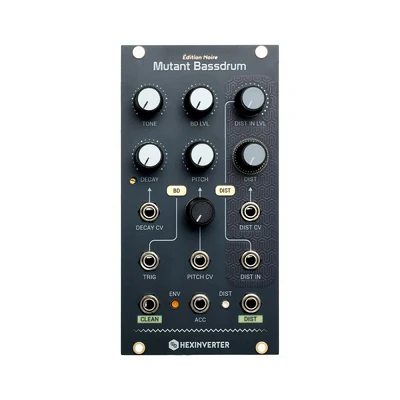 O Hexinverter Mutant Bassdrum, atualmente fabricado pela Erica Synths, é um módulo de síntese de bumbo analógico que reimagina o som clássico da lendária TR-808 para uso em sistemas modulares Eurorack. Este módulo combina um circuito de bumbo analógico com uma distorção integrada controlada por voltagem, oferecendo uma ampla gama de possibilidades sonoras para produtores e entusiastas da música eletrônica.
