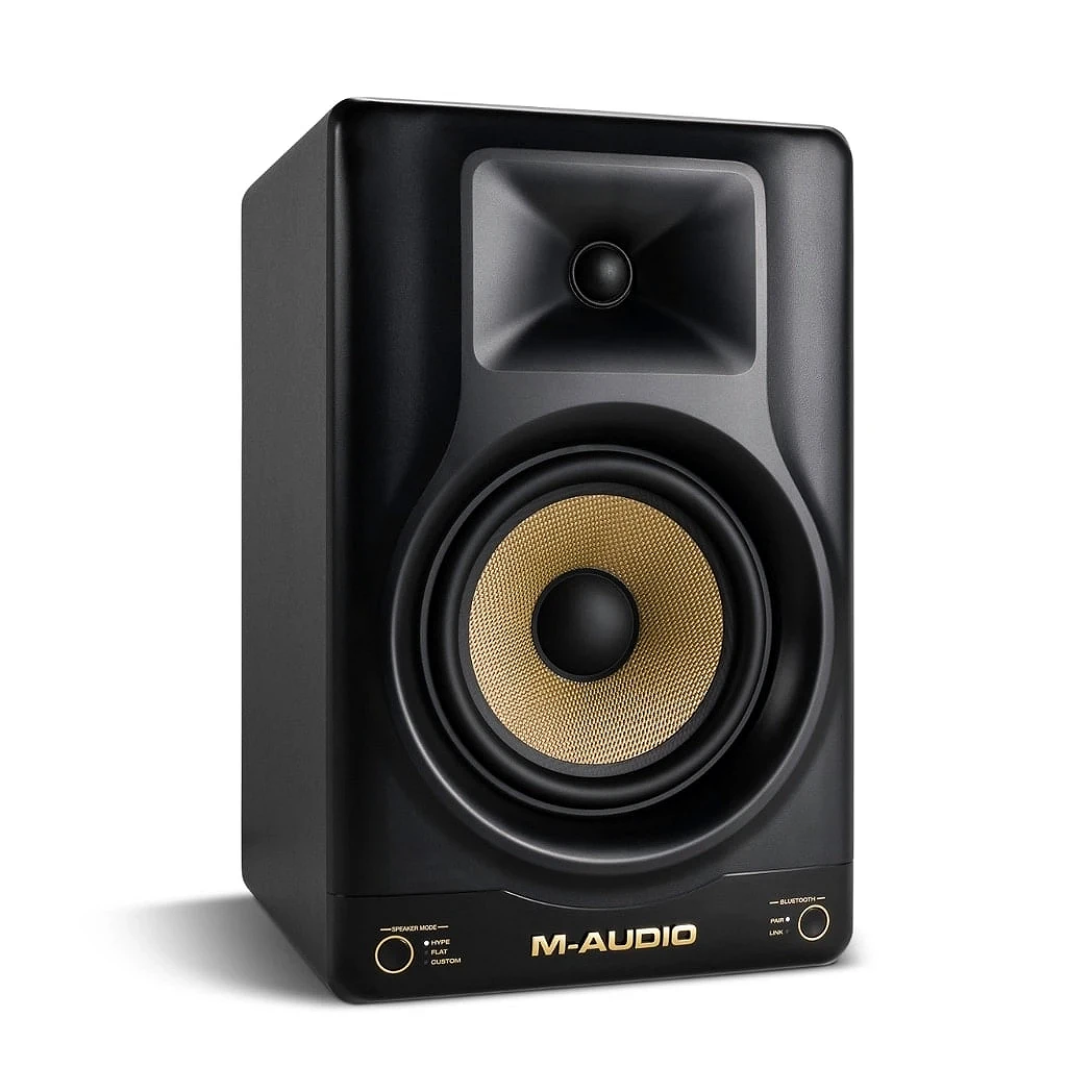 Para que puedas disfrutar de tus monitores para escucher música y no solamente para trabajar, se ha ncorporado un botón en el panel frontal que te permite alternar entre una referencia de mezcla plana y el modo HYPE, que emula la experiencia de auriculares y sistemas de coche. Además, puedes personalizar aún más tu sonido mediante la aplicación M-Audio Studio Control.