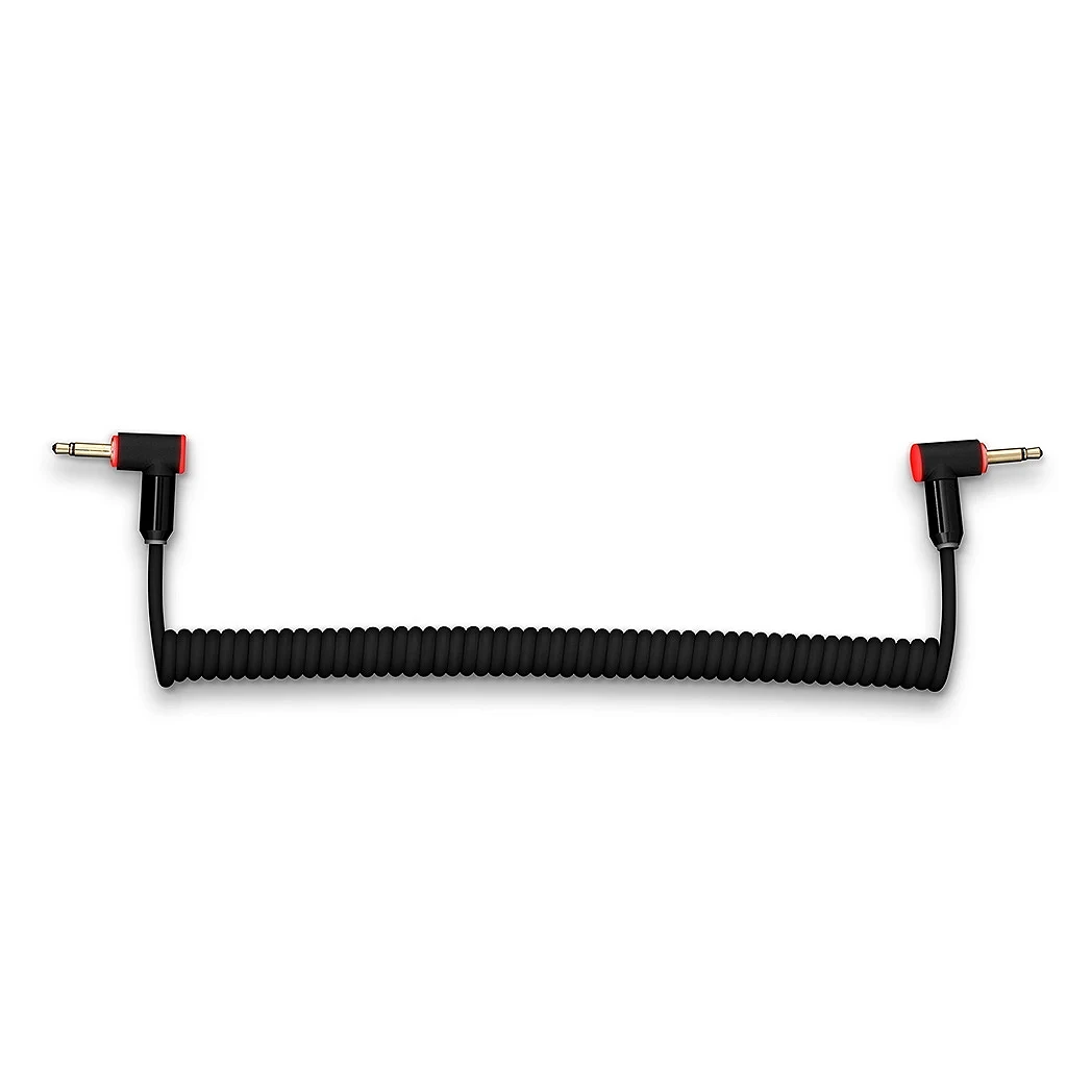 O Candycord Halo ACV37LB da MyVolts é um cabo enrolado com conectores minijack mono angulares com LEDs na cor preta