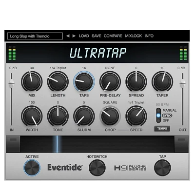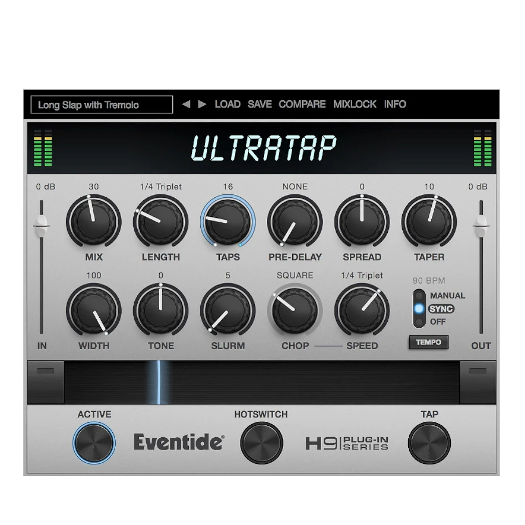 UltraTap é um efeito multi-tap único capaz de gerar atrasos rítmicos, reverberações com falhas, enormes aumentos de volume tipo pad e uma modulação extraordinária. É a ferramenta perfeita para criar preenchimentos de bateria, coros vocais, acordes de guitarra volumosos e outros efeitos em evolução: desde reverberações invertidas até um coro de igreja multitudinário cantando um canto gregoriano na catedral de Notre-Dame!