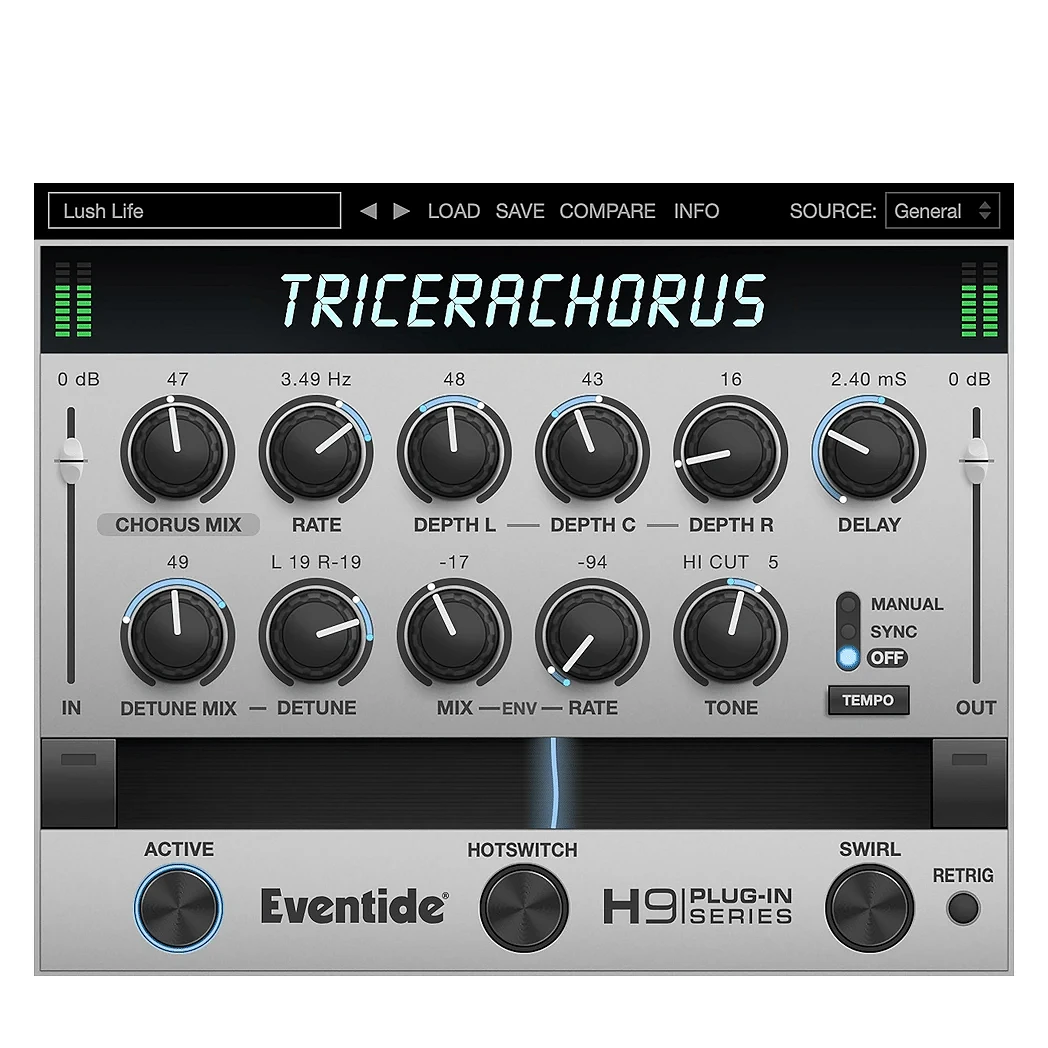 TriceraChorus da Eventide é um plugin de Chorus de três vozes com micro tom.