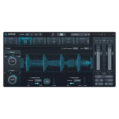 Ozone 12 Advanced utiliza um assistente com tecnologia de inteligência artificial que sugere, de forma inteligente, o processamento do áudio. Este pode ser ajustado ao teu gosto, ajudando-te a obter facilmente um som profissional nas tuas produções.