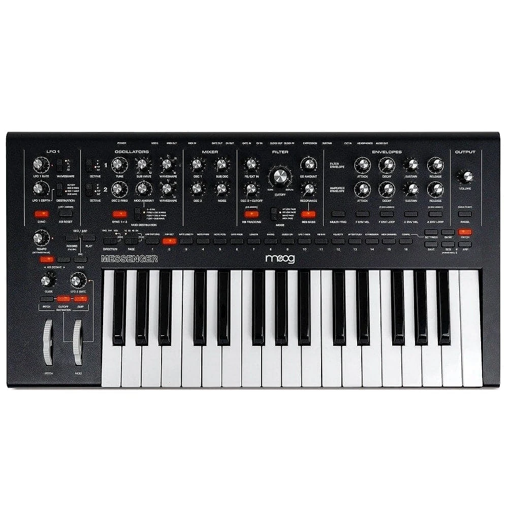 Messenger es un sintetizador monofónico diseñado para músicos y productores que desean capturar el legendario sonido de Moog en un formato compacto y accesible. Este sintetizador destaca por su inmediatez y facilidad de uso, lo que lo convierte en una herramienta perfecta tanto para principiantes como para profesionales. El Moog Messenger cuenta con controles intuitivos y un diseño ligero, ideal para llevar a cualquier lugar.