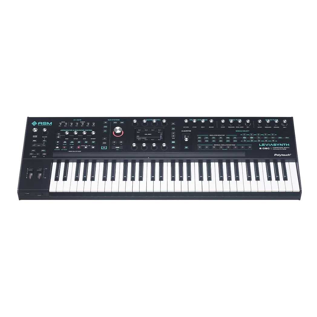 Ashun Sound Machines Leviasynth Keyboard é um sintetizador híbrido algorítmico com teclado de 61 teclas, 16 vozes de polifonia, 8 osciladores por voz, filtros analógicos e digitais e uma arquitetura avançada orientada para o design sonoro
